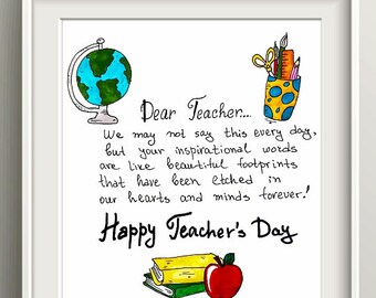 Happy Teacher’s Day Greeting Card Print. Teacher’s Day Card With