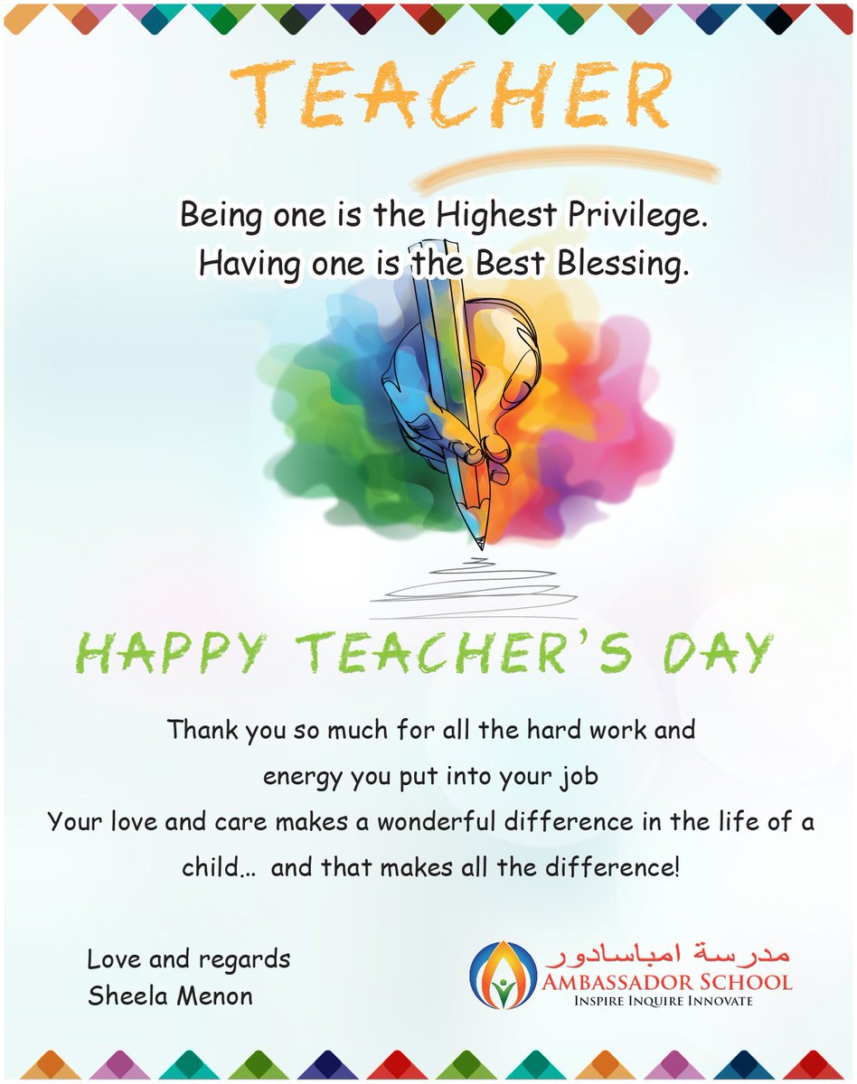 Ambassador School on X: “Happy Teachers ‘Day to a wonderful team